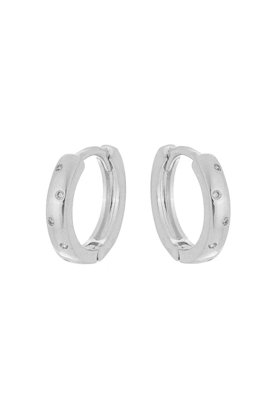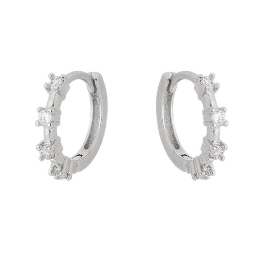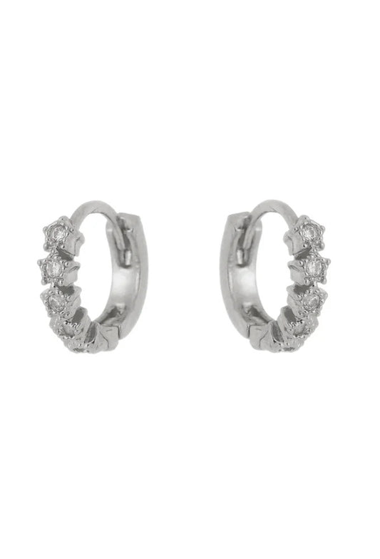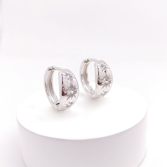 18k Gold / Rhodium Plated Huggie Hoop Earring with Little Stars