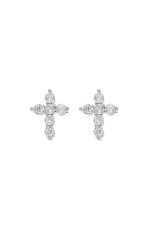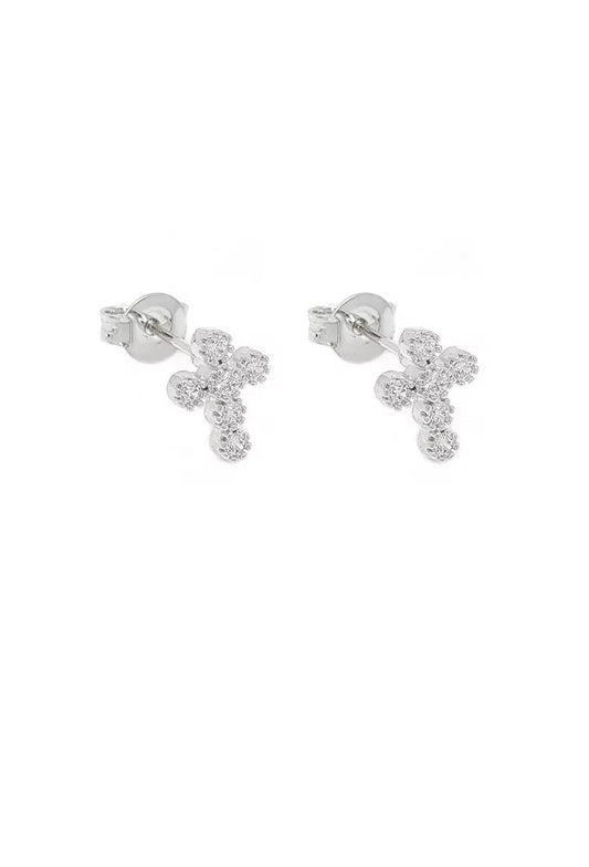 18k Gold / Rhodium Plated Delicate Cross Stud Earring