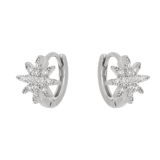 18K Gold / Rhodium Plated Triple Star Cubic Zirconia Huggie Hoop Earrings