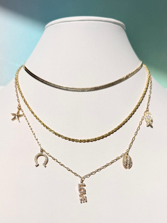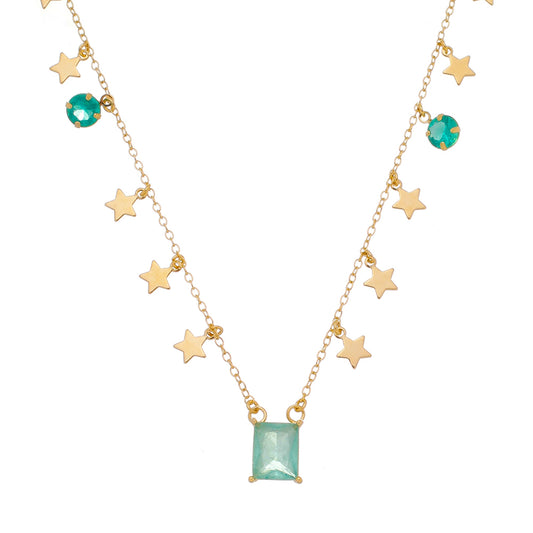 18k Gold / Rhodium Plated Choker with a Faceted Rectangular Crystal and Star Medals