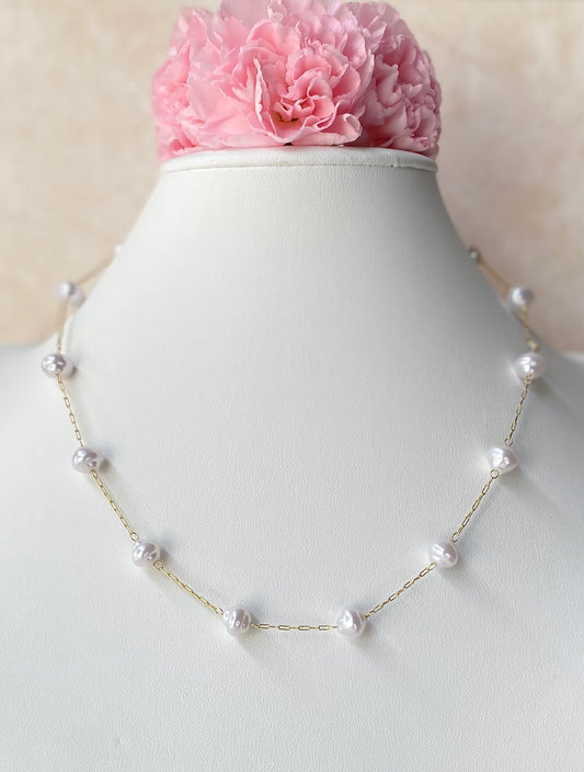 18k Dainty Pearl Necklace with Sparkling Star Charm