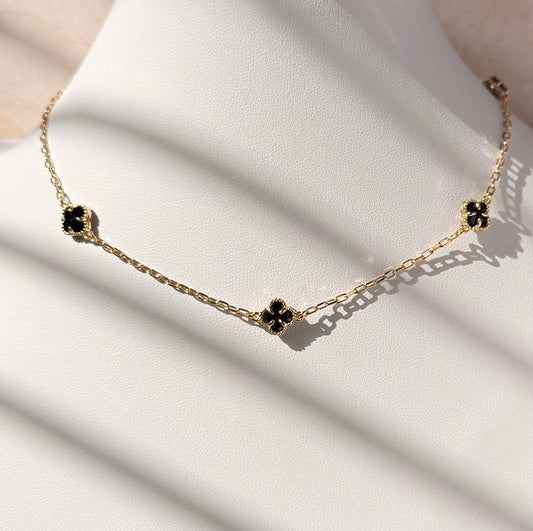 18k Gold Plated Black Onyx Clover Choker