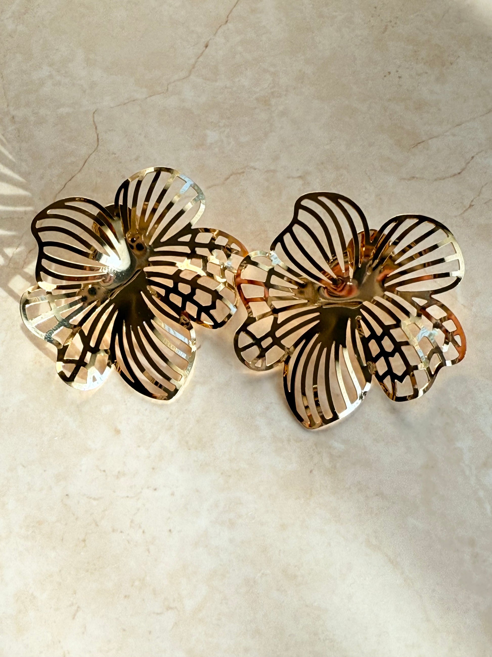 18k Gold Plated Cutout Statement Floral Earrings