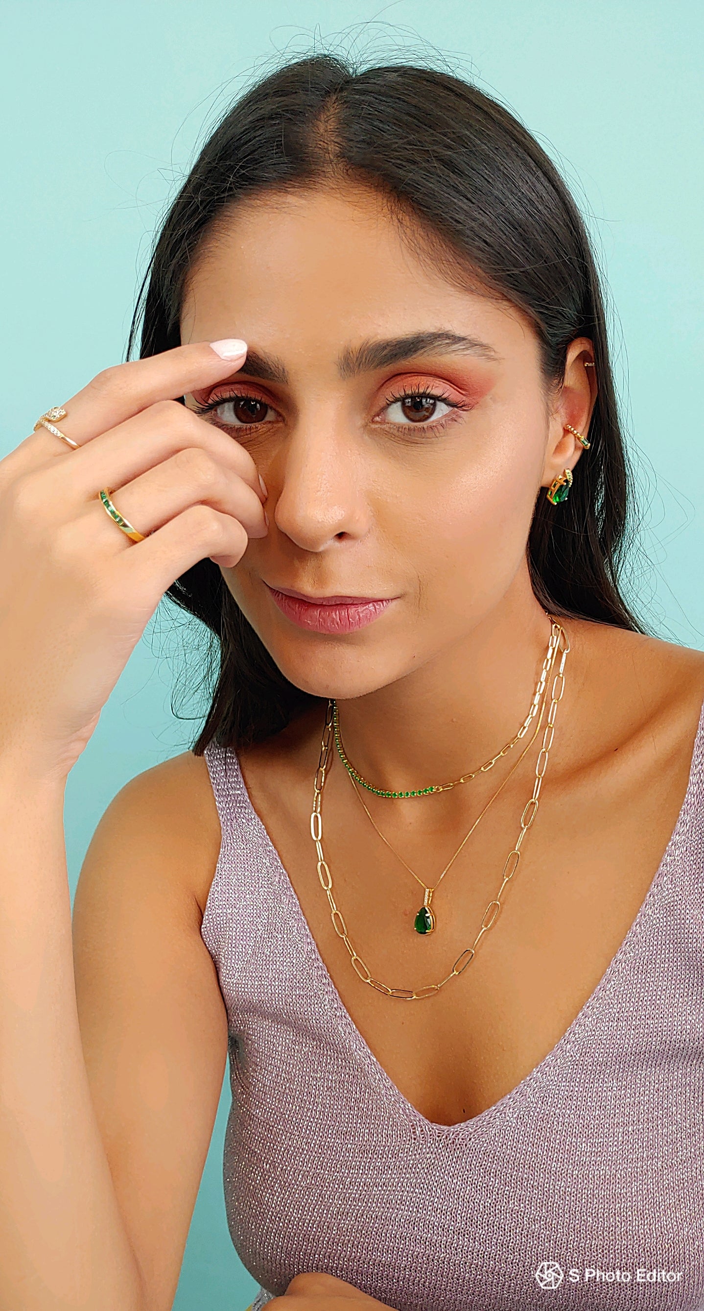 18k Gold Plated Emerald Teardrop Jewelry Set – Necklace & Earrings