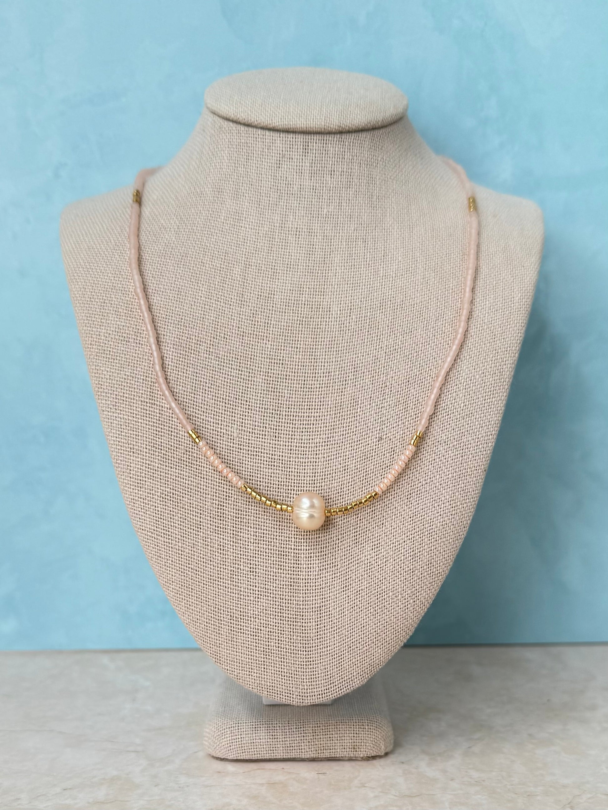 Handmade Beaded Necklace with Freshwater Baroque Pearl