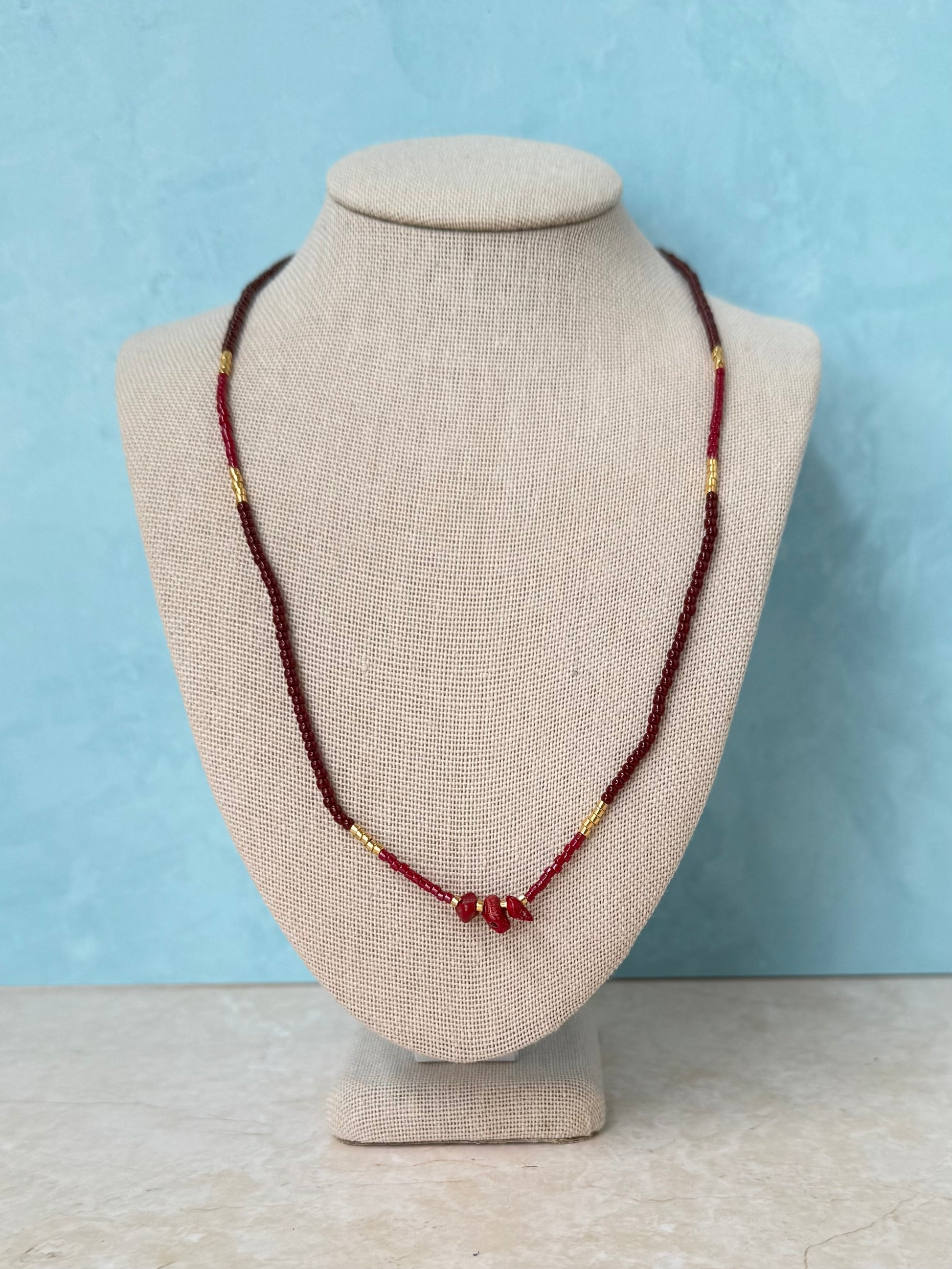 Handmade Red Beaded Necklace with Bamboo Coral Detail
