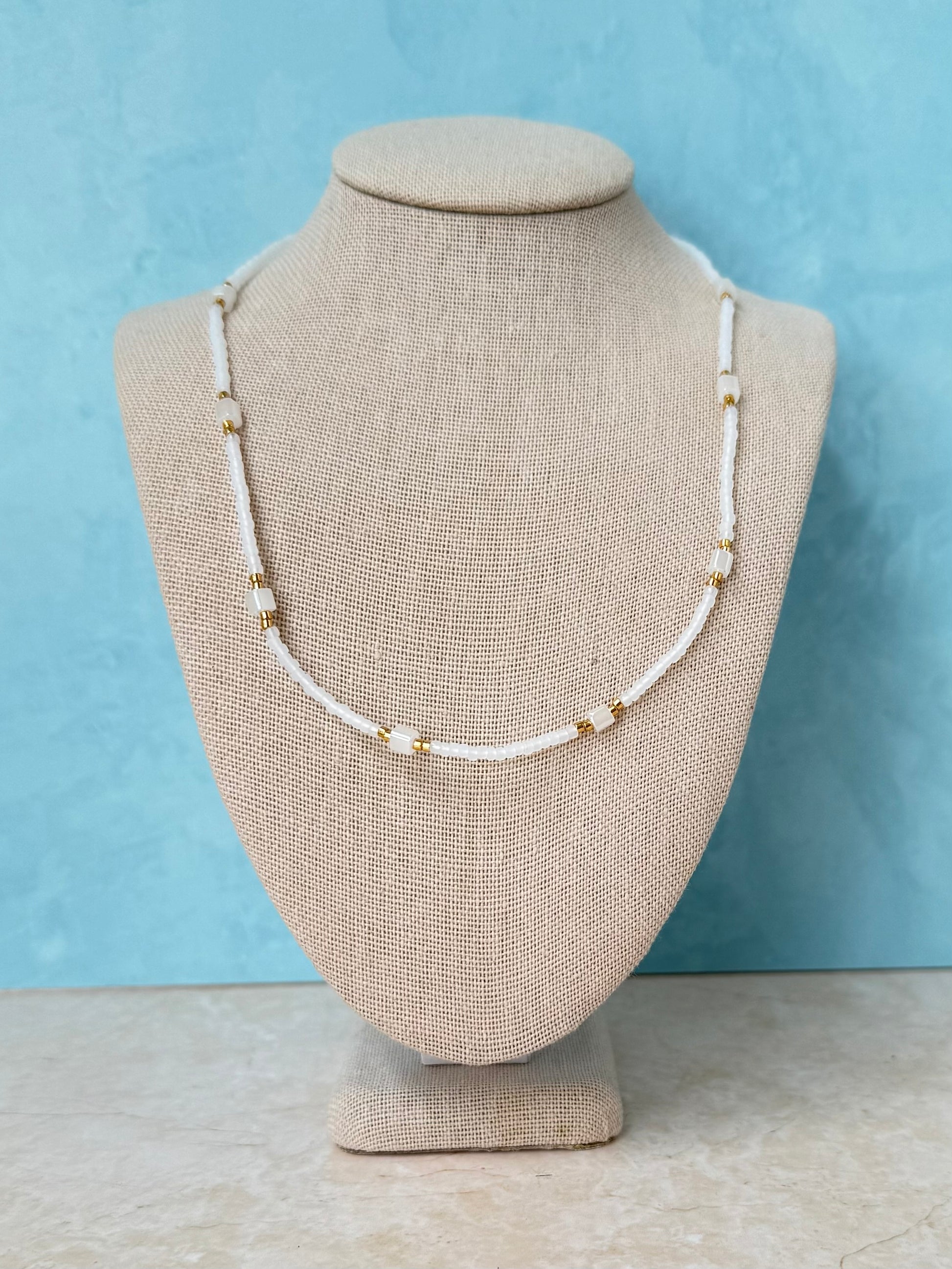 Handmade White Matte Dainty Beaded Necklace